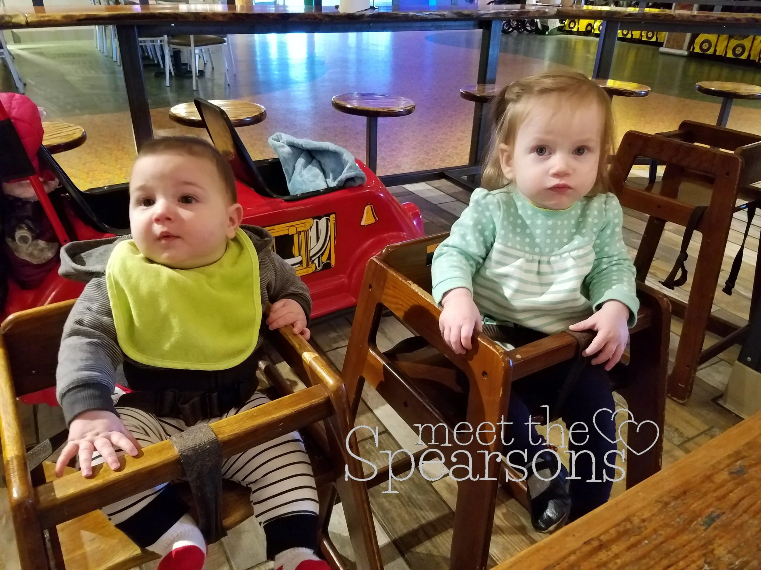 So off we went. E ate his first pickle and sweet potato fry and declared them DELICIOUS. He also took turns with his best buddy driving the fire truck all around the store. The adults had some ice cream, the babies watched the liquid fireworks, and we all stayed warm and out of the cold.
