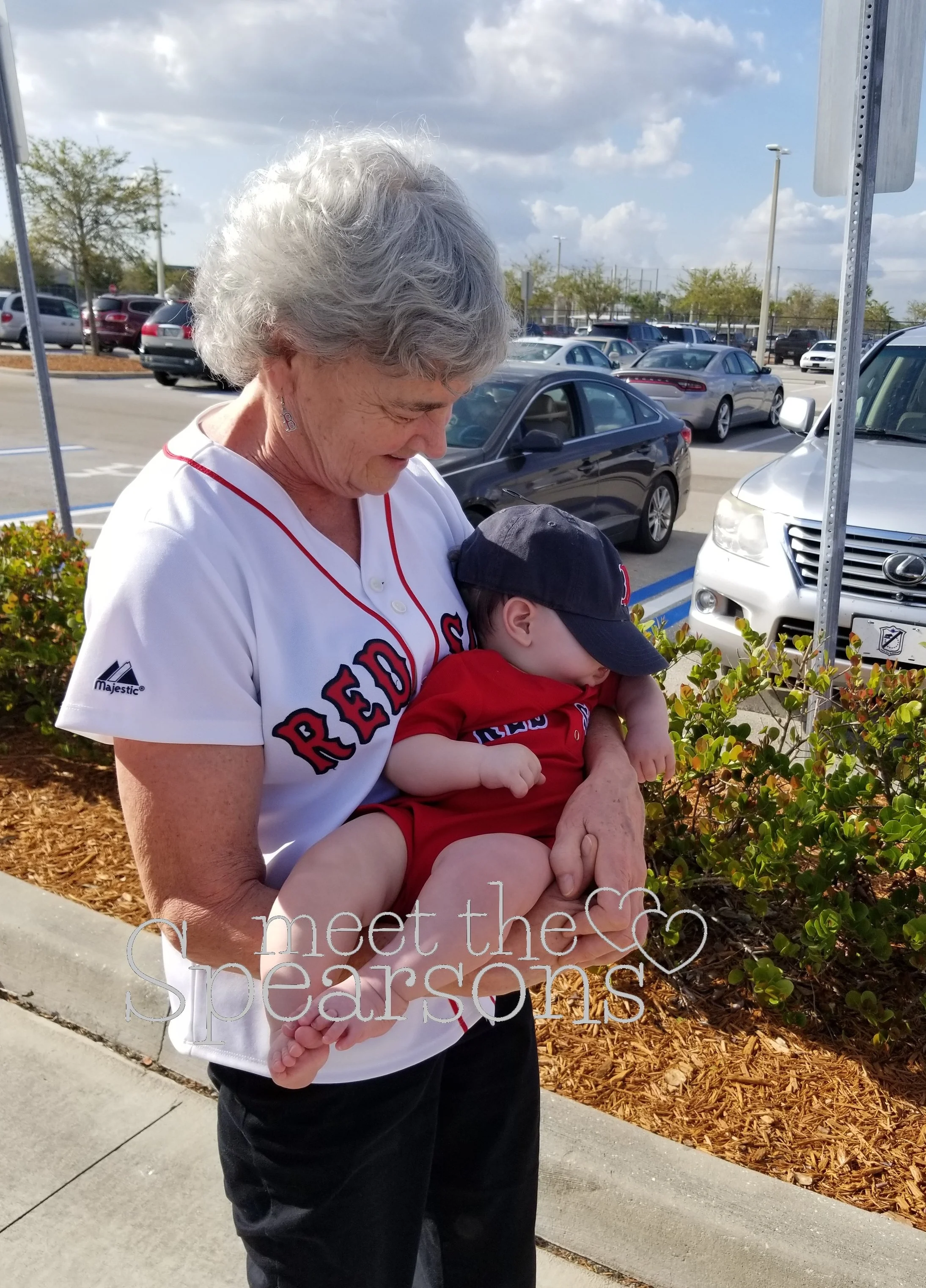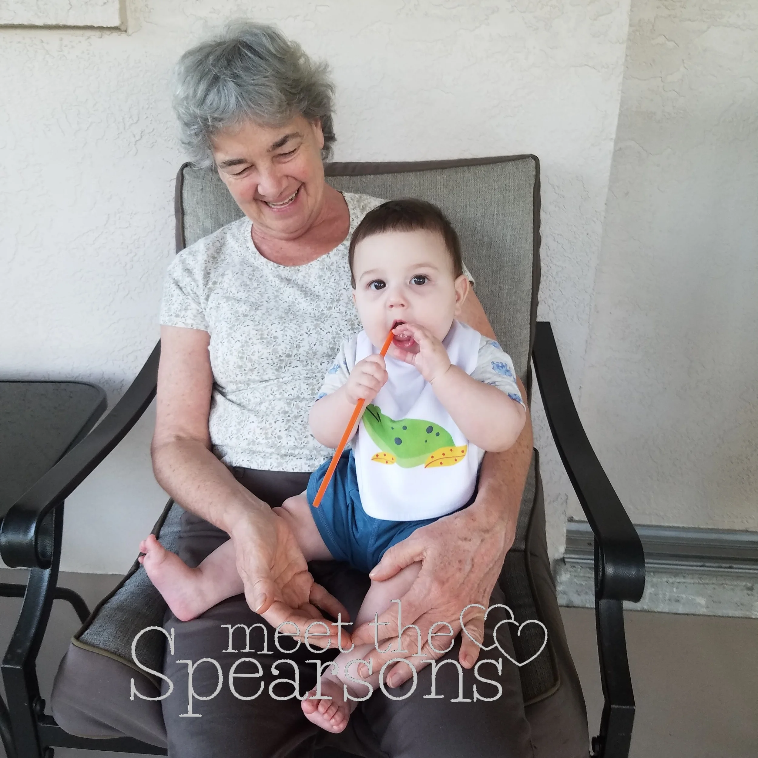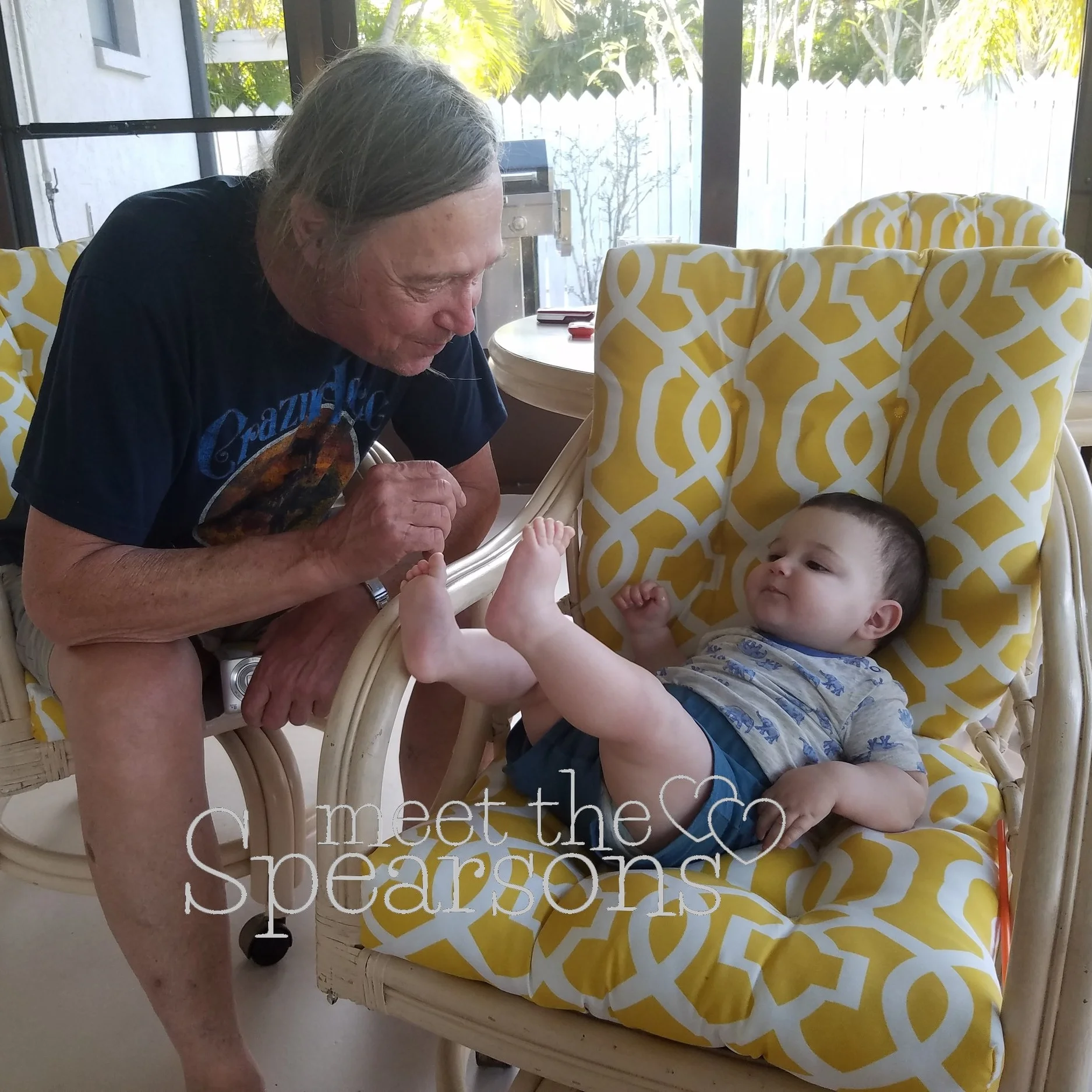 Now that E can crawl, he loves to explore. Crawling from room to room, following you around, checking everything out. One thing we didn't consider, when we planned this trip, was how he would react to crawling in shorts, on a tile floor. Most houses in Florida are tiled - which makes cleaning up easy, but they're apparently not so great for crawling. His little knees started to get red and sore, and he was not happy. He started crawling with his legs completely straight so his knees wouldn't touch the ground. It was equal parts hilarious and sad. Unfortunately, since the weather was in the high 80s the entire time we were there, I packed mostly shorts and rompers for him. I did have a few pairs of pants which I put on him, and that helped a bit, but we also ended up spending more time in rooms with carpet so he could move about easier.
